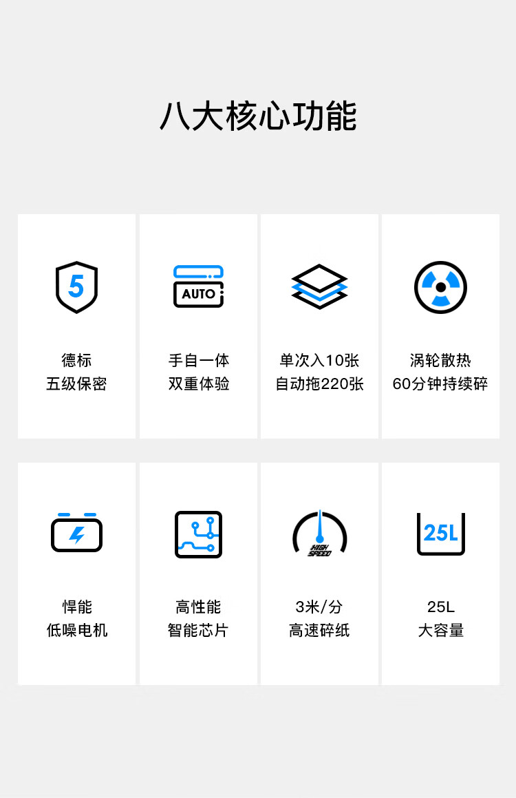 歌派(GEPAD)GS-9220M 5级保密办公商用全自动碎纸机(手动10张/自动220张 持续60分钟 25L可碎卡)