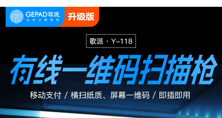 歌派(GEPAD)扫描枪 有线一维扫码枪 商场超市便利店微信收款扫描器 Y-118