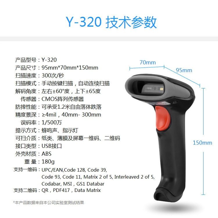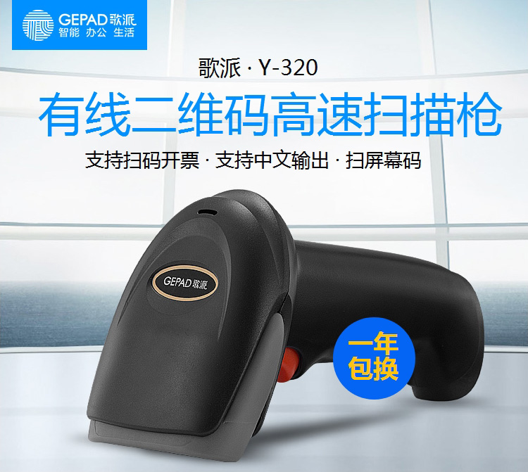 歌派(GEPAD) Y-320有线一二维码扫描枪 移动支付微信收款开票扫码枪 商超收银物流仓储条码