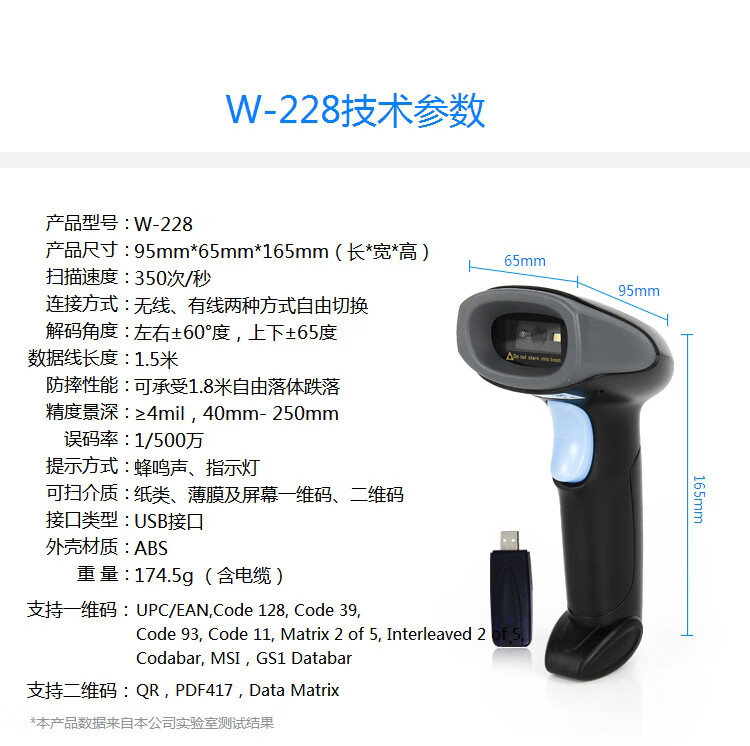 歌派(GEPAD)W-228 无线扫描枪 一二维码扫码枪 超市微信收银开票扫码器 物流仓储条码枪