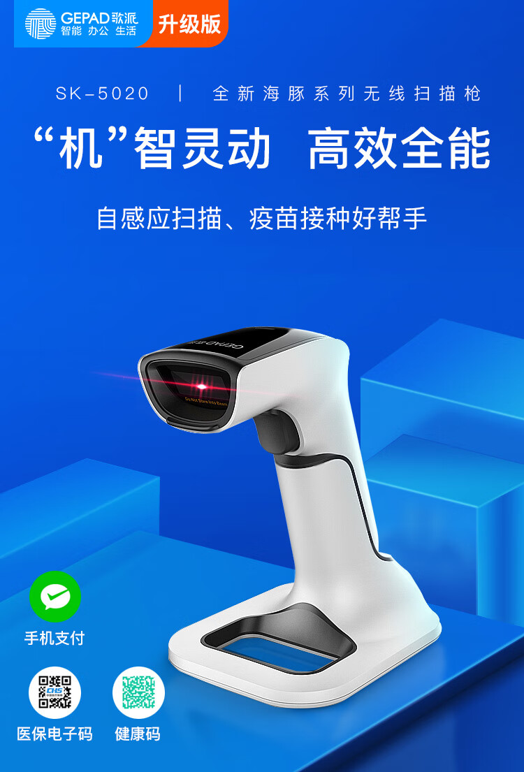 歌派(GEPAD)扫描枪 无线一二维码扫码枪 蓝牙扫码器 商超收银开票农资医保电子凭证码疫苗接种 SK-5020