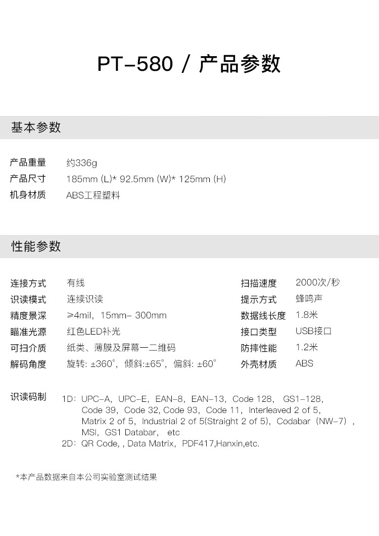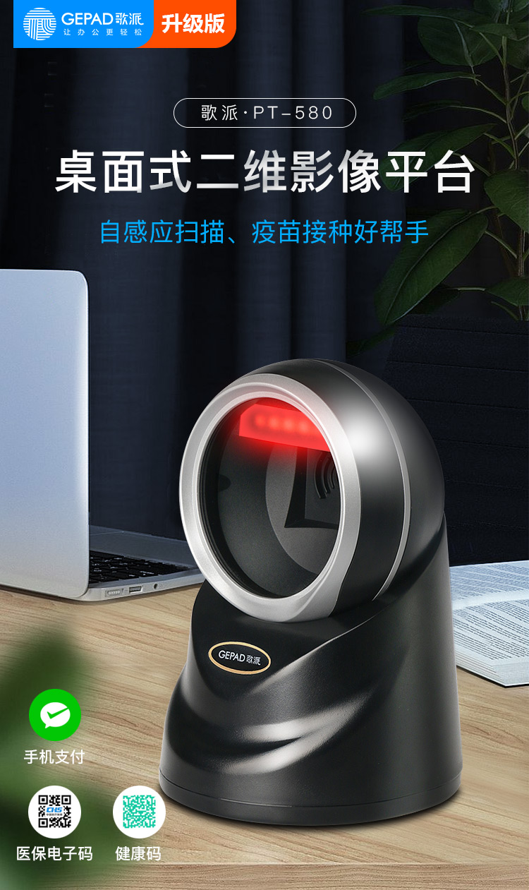 歌派(GEPAD)扫描枪 一二维码扫描平台扫码枪 商超餐饮收银开票扫码器 医保电子凭证码疫苗接种 PT-580