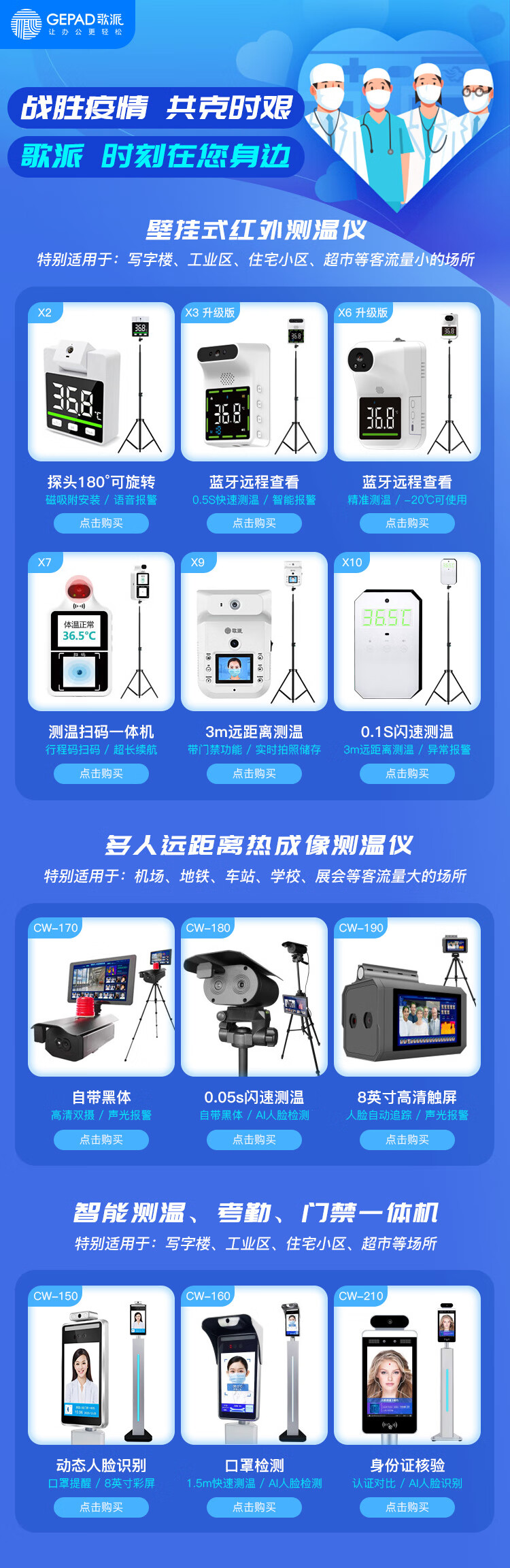 歌派(GEPAD)CW-160 红外测温仪 口罩识别考勤机打卡机 人脸识别测温 考勤门禁一体机