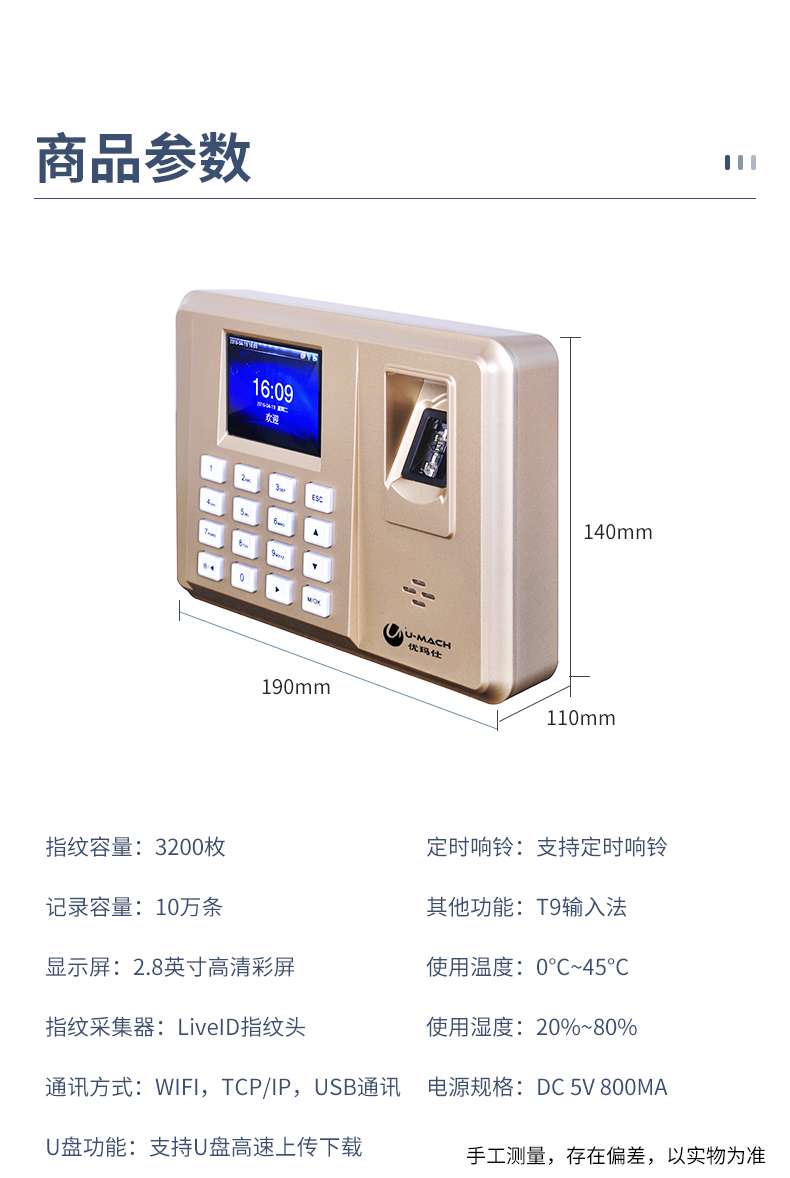 优玛仕 U-MACH智能指纹考勤机打卡机U-Z20