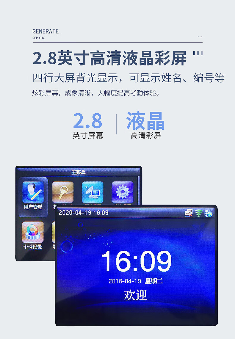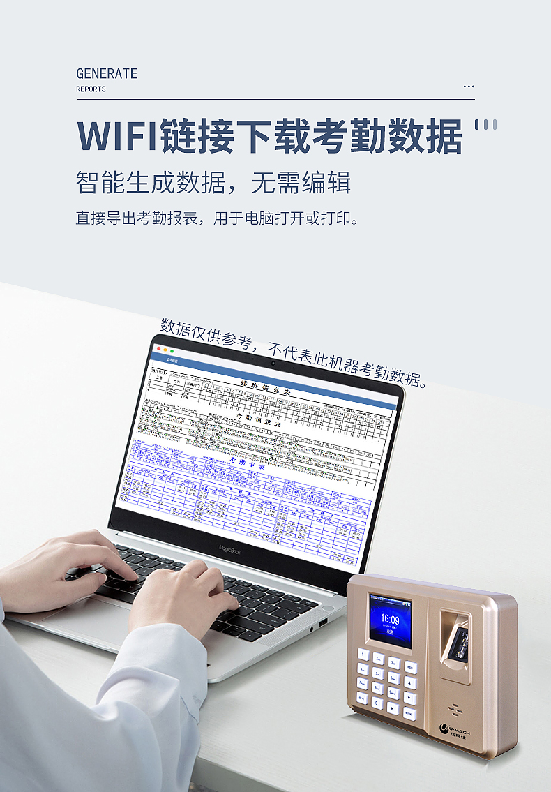优玛仕 U-MACH智能指纹考勤机打卡机无线wifi打卡机U-Z20W