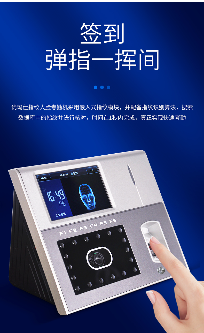 优玛仕(U-MACH)人脸指纹考勤机异地联网签到机公司面部识别上下班打卡机U-PF1000-P2P