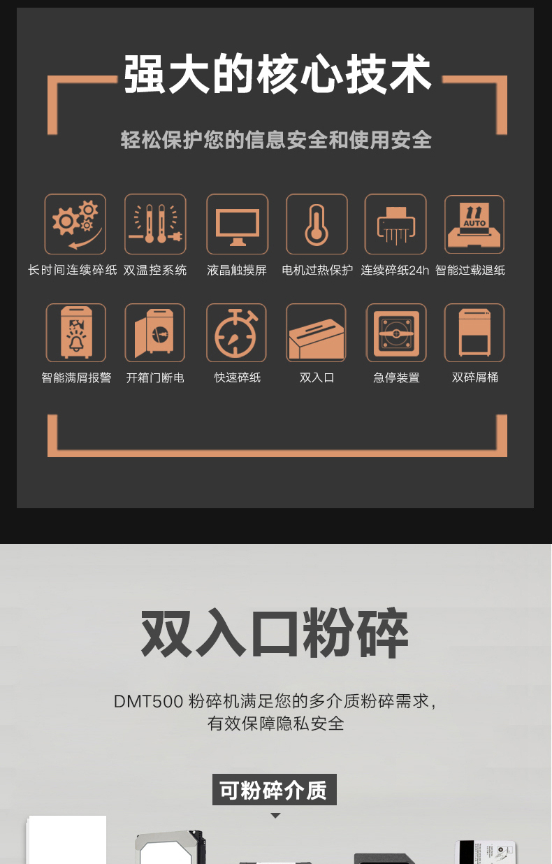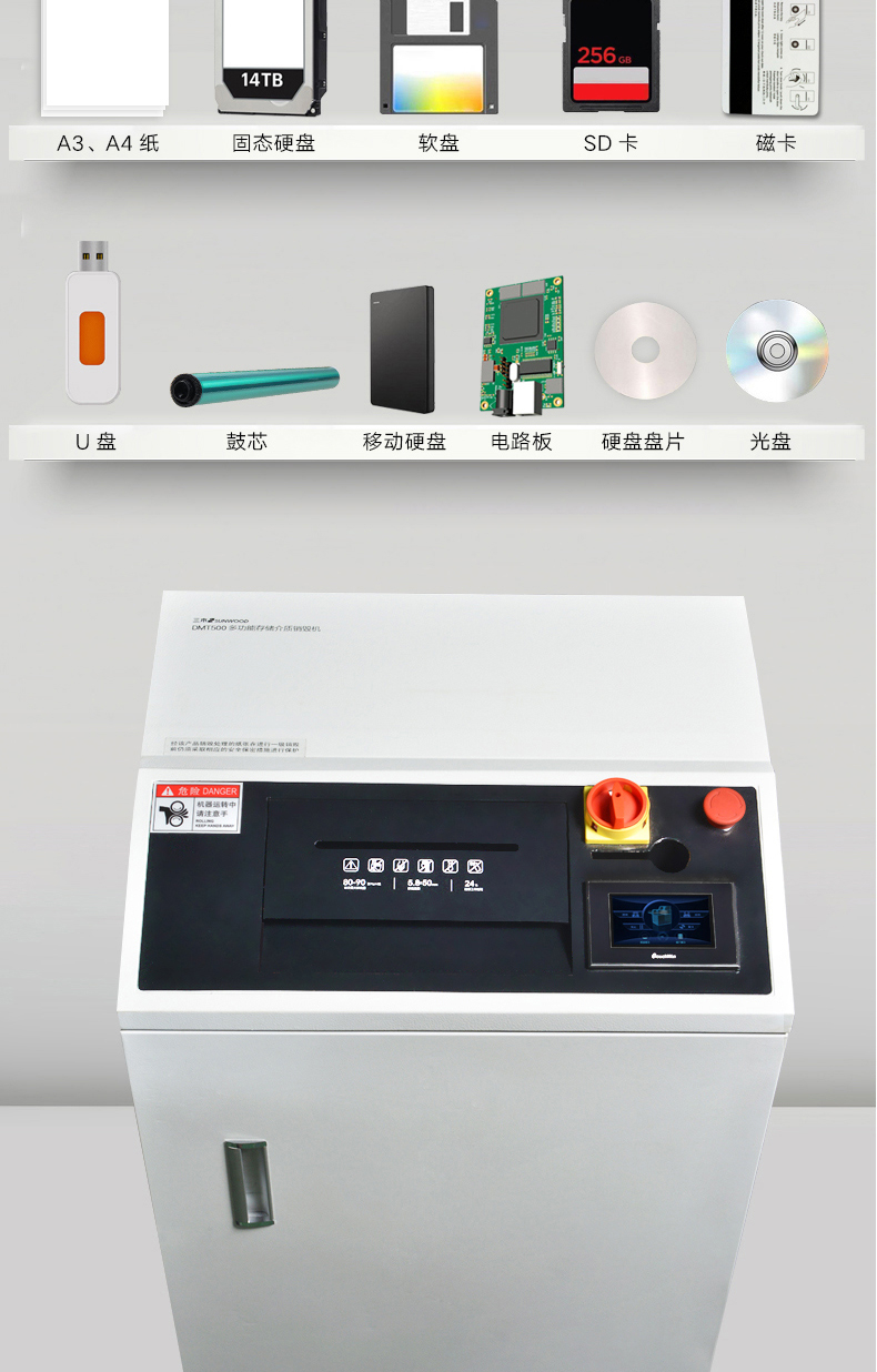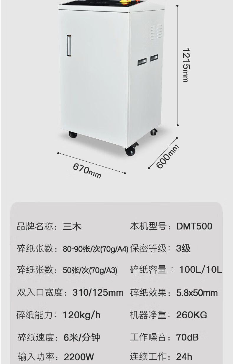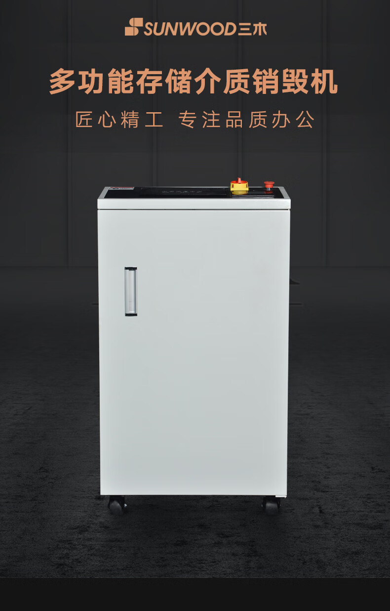 三木(SUNWOOD)DMT500 3级保密专业销毁碎纸机 (单次80张 持续24小时 100L 可碎光盘 纸 订书针 硬盘 U盘)