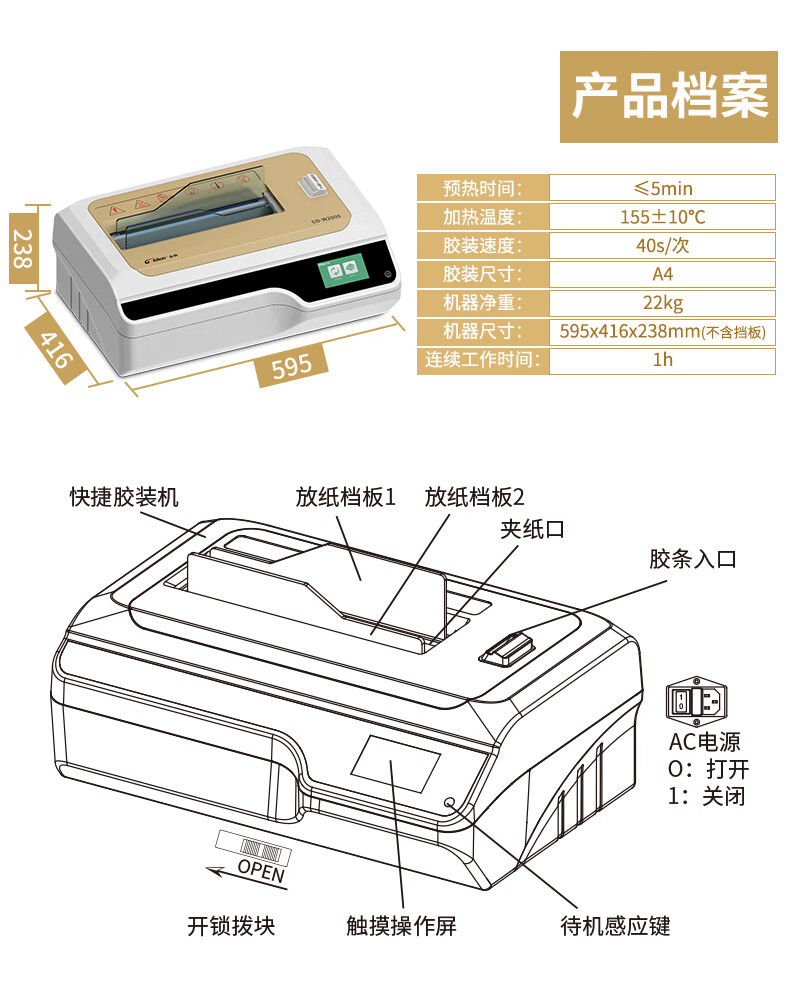 金典 GOLDEN GD-W2000装订机桌面式布条胶装机
