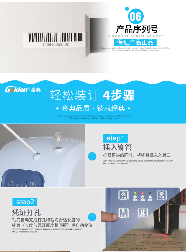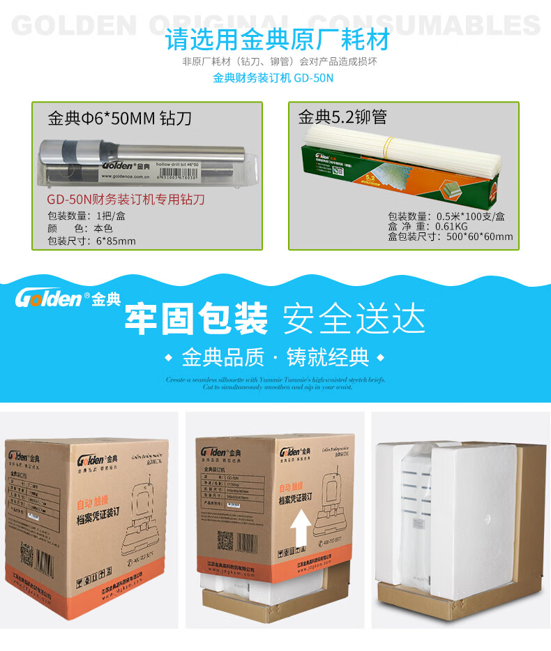 金典(Golden)GD-50N装订机财务凭证装订机 档案打孔机 激光电动升级版
