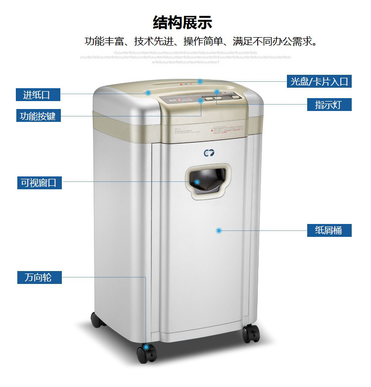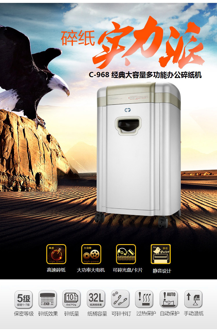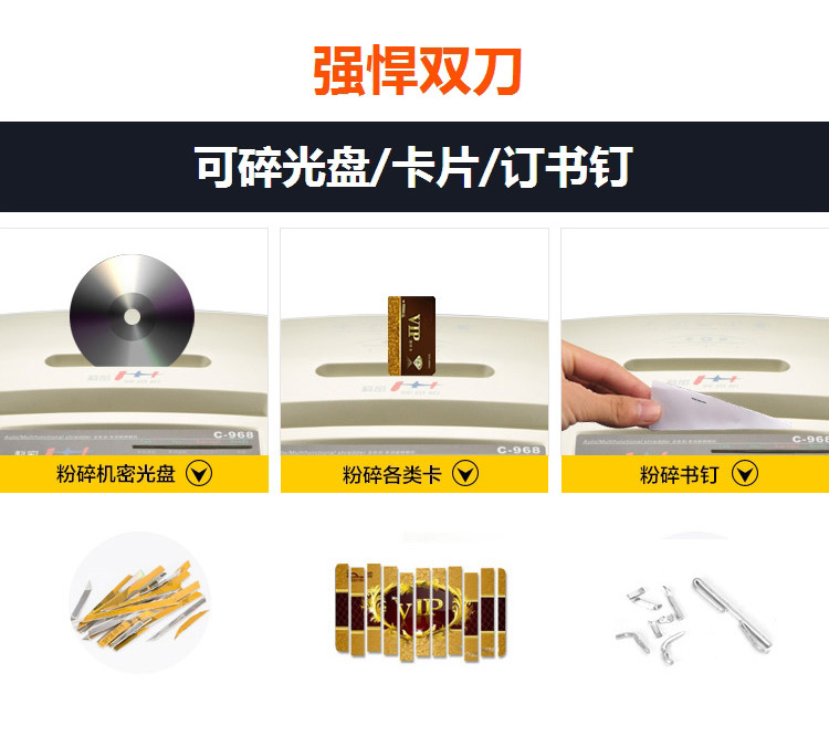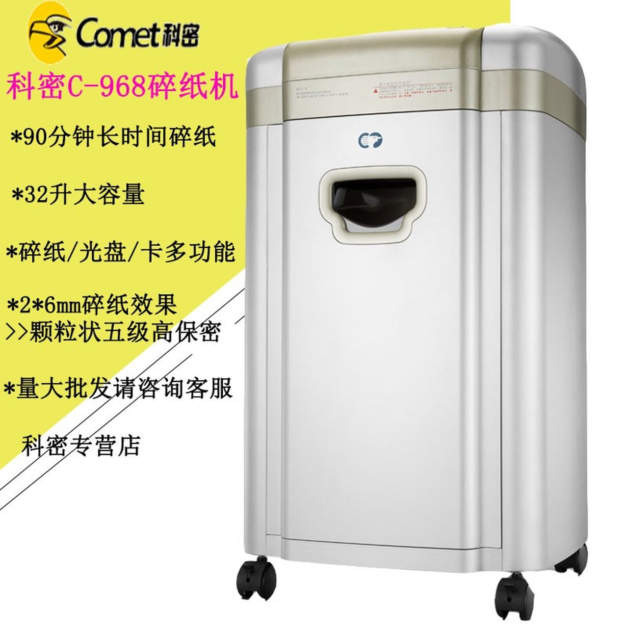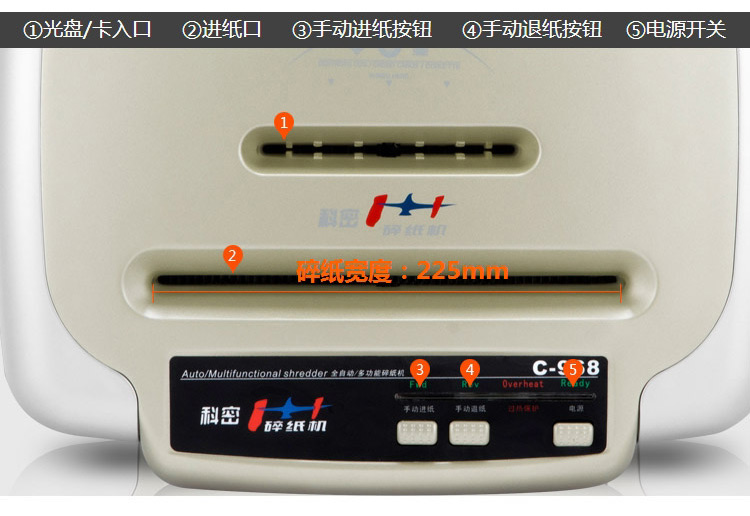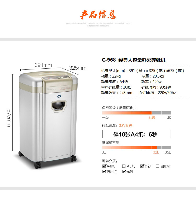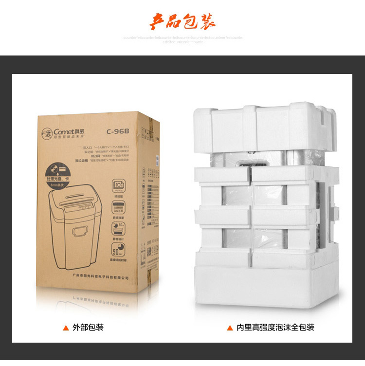 科密C-968碎纸机C968 办公用长时间多功能大容量颗粒状5级高保密10张90分钟2*6碎纸光盘卡
