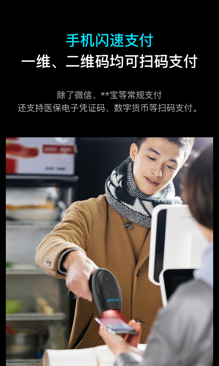 歌派(GEPAD) 扫描枪 二维工业级扫码枪3mil高精度 商超仓储扫码器 金属条码 医保电子凭证码健康码GY-2880