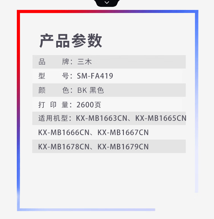三木(SUNWOOD) SM-FA419 硒鼓 适用于KX-MB1663CN、KX-MB1665CN、KX-MB1666CN