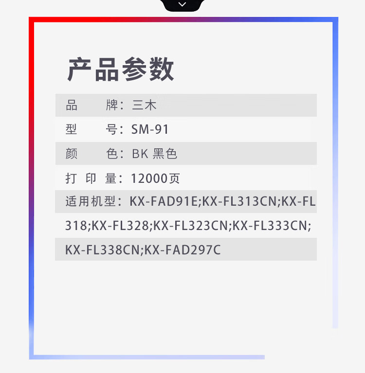 三木(SUNWOOD) SM-91 硒鼓 适用于KX-FAD91E;KX-FL313CN;KX-FL318;KX-FL328