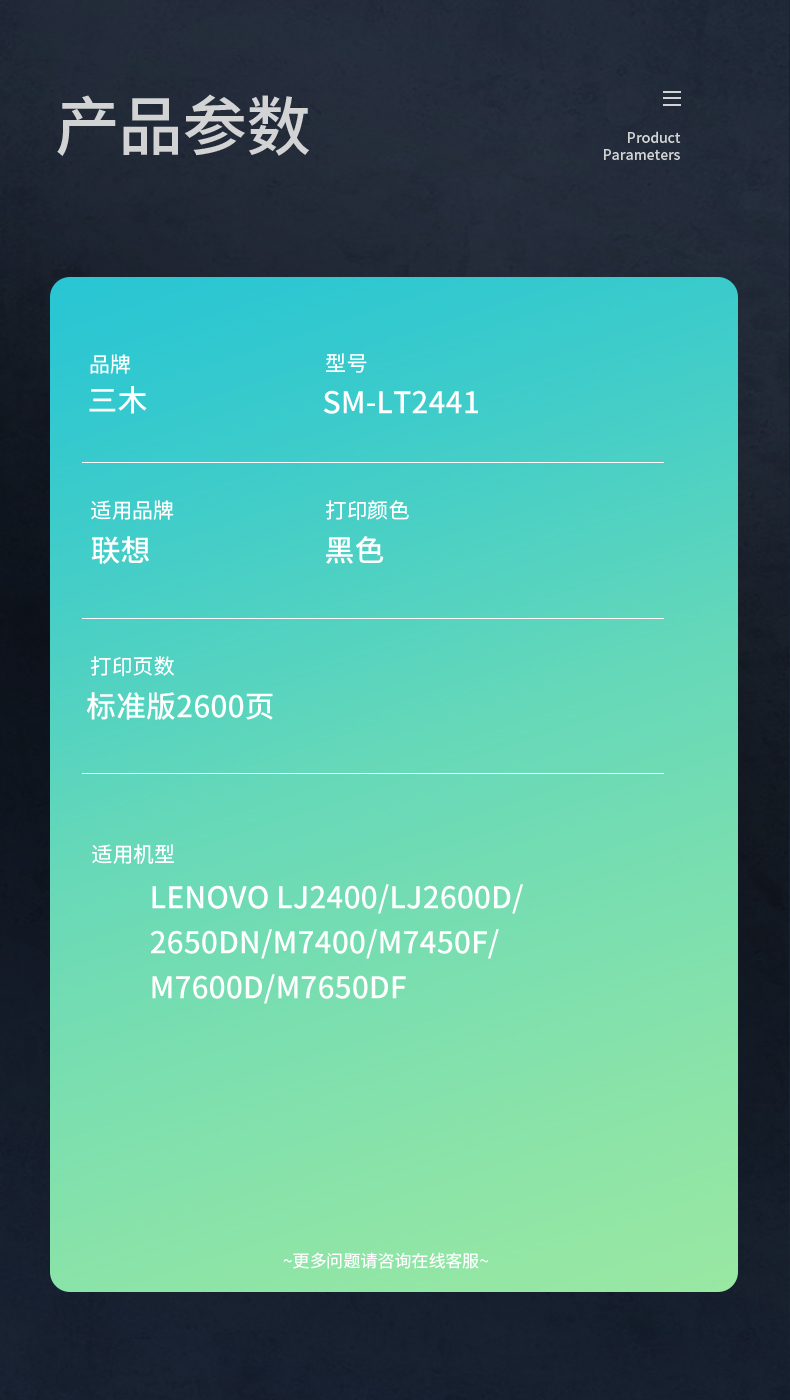 三木(SUNWOOD) SM-LT2441 粉盒 适用于LENOVO LJ2400/LJ2600D/2650DN/M7400/M7450F